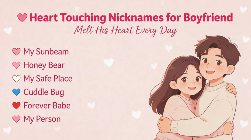 In the quiet moments when words feel deepest, a single heart touching nicknames for boyfriend can say everything your heart feels. Whether you’re whispering it during a late-night call or texting it with a ❤️ emoji, these special names turn ordinary love into something unforgettable. If you’ve ever wanted to make your boyfriend feel truly cherished, you’re in the right place.